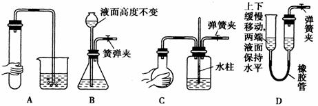 (1)气体制备时须先检查装置的气密性,下列各图所示装置,肯定不符合气密性检查要求的是 。