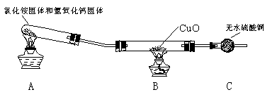 上图的实验装置中,A中是浓氨水,B中是生石灰,C中是干燥剂。已知氨气有还原性,能还原氧化铜,生成物之一是空气的主要成分。试通过分析回答:
