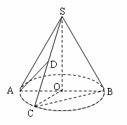 如图:圆锥的顶点是S,底面中心为O。OC是与底面直径AB垂直的一条半径,D是母线SC的中点。
