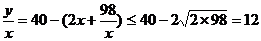 由y= -2x2+40x-98= -2-- (x-10)2+102