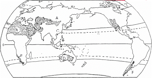 39.(15分)读“世界荒漠带分布图”回答下列问题: