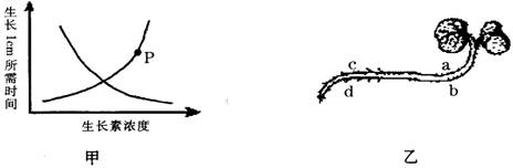 11.将植物横放,测量根和茎生长素浓度与其生长状况的关系如甲图所示,则曲线上P点最可能对应于乙图中的位置是( )