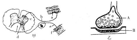 (6分)下图甲是缩手反射相关结构,图乙是图甲中某一结构的亚显微结构模式图。据图回答: