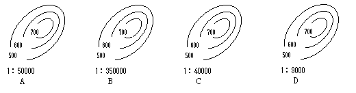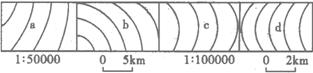 16、上面四幅图中等高距相同,则a、b、C、d四处坡度大小排列正确的是