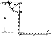 23.(12分)如图所示,位于竖直平面上的1/4圆弧光滑轨道,半径为R,OB沿竖直方向,圆弧轨道上端A点距地面高度为H,质量为m的小球从A点静止释放,最后落在地面C点处,不计空气阻力.求: