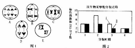 (5)在图2中,Ⅰ表示 的数量;图l所示的5个细胞中能对应着图2所示“分裂时期2“的细胞是 。