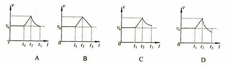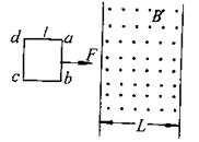 光滑水平面上放一边长为l的正方形金属框,有界匀强磁场的方向竖直向上,磁场区域的宽度为L,且L>l。金属框在水平恒力F作用下沿水平做直线运动,穿过磁场区域。已知ab边进入磁场时,金属框的加速度恰好为零,当cd边离开磁场时即撤去恒力F 则从线框的ab边进入磁场到cd边离开磁场的过程中,线框的速度随时间变化的图象是( )