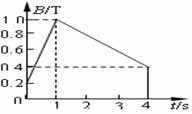 某匀强磁场垂直穿过一个线圈平面,磁感应强度B随时间t变化的规律如图线所示。若在某1s内穿过线圈中磁通量的变化量为零,则该1s 开始的时刻是 ( )