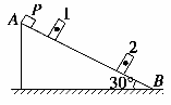 (1)、利用如图所示的装置来验证机械能守恒定律。图中AB是固定的光滑斜面,已知斜面的倾角为30°,图中的1和2是固定在斜面上适当位置的两个光电门,当光电门中有物体通过时与它们连接的光电计时器(都没有画出)能够显示挡光时间。让滑块从斜面的顶端滑下,则光电门1和2各自连接的光电计时器所显示的挡光时间分别为⊿t1=5.00×10-2 s、和⊿t2=2.00×10-2 s. 已知滑块质量为m=2.00 kg,滑块沿斜面方向的长度为L=5.00 cm,光电门1和2之间的距离为0.54m,若取重力加速度为g=9.80 m/s2,且滑块经过光电门时的速度为其平均速度。