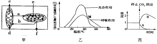 (4)丙图显示,在光照下物质A和物质B的浓度很快达到饱和并保持稳定。此时突然中断CO2的供应,A、B物质的浓度将发生变化。其中,固定二氧化碳的化合物是______ _(用图中字母表示),二氧化碳转化的第一个产物是 (用图中字母表示)。