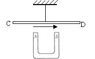 在蹄形磁铁的上方用橡皮绳悬挂一根通电直导线CD,如图所示,