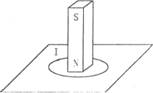 如图所示,一通电圆环质量为m,电流方向为逆时针方向放在水平桌面上,一条形磁铁竖直放在环的中心处,N极在下端,下面判断正确的是: