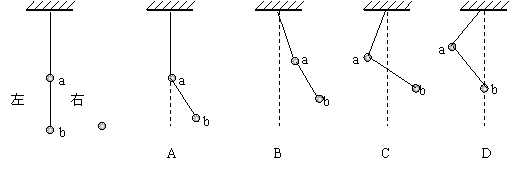 3、用轻质细线把两个质量未知的小球悬挂起来,如图所示,今对小球a持续加一个向下偏左300的恒力,并对小球b持续施加一个向右偏上300的同样大小的力,最后达到平衡表示平衡状态的图可能是…………………………………………………………( )