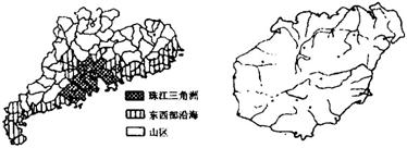 读广东省内部区域划分图和海南岛轮廓图,回答7-11题