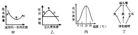 C.丙图表示大棚内某经济作物光合作用速率与温度的关系,若使大棚内昼夜温度持续控制在25℃左右,将有利于作物增产