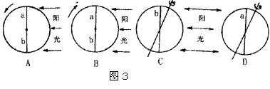13.如果用a表示晨线,b表示昏线,下列各图表示正确的是 ( )