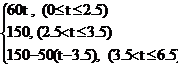7.已知A、B两地相距150千米,某人开汽车以60千米/小时的速度从A地到达B地,在B地停留1小时后再以50千米/小时的速度返回A地,把汽车离开A地的距离x表示为时间t(小时)的函数表达式是                                (   )