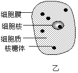 (4)常见的由甲种细胞组成的生物有              。由乙种细胞组成的生物有