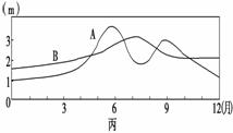 某研究性学习小组调查了我国东部河流某河段的情况,并绘成该河段示意图甲、EF河段河床剖面示意图乙和A、B两水文站测得的水位变化图丙。据此回答13-14题: