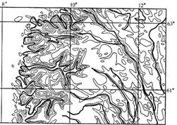 读世界某地区等高线地形图,回答19-20题: