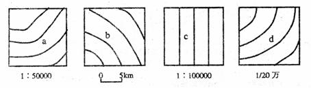 下图是等高距相同的四幅地形图,有关a、b、c、d四处坡度大小的说法,正确的是( )