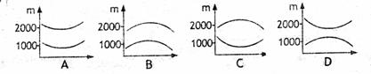 C.南坡海拔2500米处 D.北坡海拔2100米处