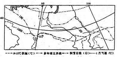 A.多年冻土均分布在1月气温小于-20℃的地区