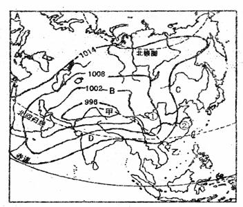 下图为“亚洲某日等压线分布图”,读图完成下列各题。