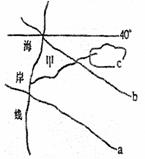 右图中的40°线为纬线,a、b、c为等温线,甲为河流,并且甲地常年受西风的控制。读图回答下列问题。