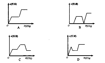 14将足量的CO2不断通入KOH、Ba(OH)2、KAlO2的混合溶液中,生成沉淀与通入CO2的量的关系可表示为(已知Ba(AlO2):可溶)( )