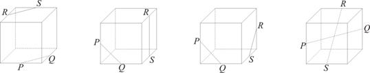 7. 正方体上的点P、Q、R、S是其所在棱的中点,则直线PQ与直线RS异面的图形是( )