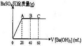 29.(8分)在t℃时,稀硫酸和盐酸混合液中,c(H+)=10-a mol·L-1,c(OH-)=10-b mol·L-1,已知a+b=12.向20mL该混合酸溶液中逐滴加入pH=11Ba(OH)2溶液,生成BaSO4的量如图所示,当加入60mL Ba(OH)2溶液时,C点溶液的pH=6(体积变化忽略不计),试计算: