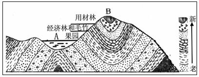 读“安徽省南方某丘陵地区地层剖面和立体农业” 示意图,并回答下列问题。(14分)