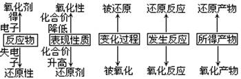 1、 要理清知识线索,即价升高→失电子→还原剂→氧化反应→氧化产物(或价降低→得电子→氧化剂→还原反应→还原产物)。