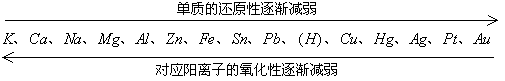 (1)由元素的金属性或非金属性比较 <1>金属阳离子的氧化性随其单质还原性的增强而减弱
