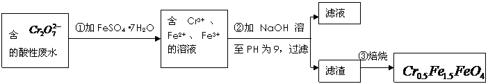 (3)从最终所得磁性材料的化学式可知,滤渣中主要有Cr(OH)3、Fe(OH)2、Fe(OH)3;