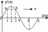 如图所示,一列简谐波向右以8.0m/s的速度传播,某一时刻沿波的传播方向上有a.b两质点,位移大小相等,方向相同。以下说法中正确的是