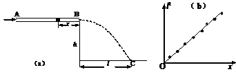 利用图(a)实验可粗略测量人吹气产生的压强。两端开口的细玻璃管水平放置,管内塞有潮湿小棉球,实验者从玻璃管的一端A吹气,棉球从另一端B飞出,测得玻璃管内部截面积S,距地面高度h,棉球质量m,开始时的静止位置与管口B的距离x,落地点C与管口B的水平距离l。然后多次改变x,测出对应的l,画出l2-x关系图线,如图(b)所示,并由此得出相应的斜率k。