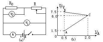 20.(12分)如图所示(a)电路,当变阻器的滑动片从一端滑到另一端的过程中两电压表的读数随电流表读数的变化情况如图(b)中的AC,BC两直线所示,不考虑电表对电路的影响。
