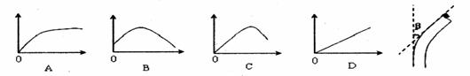 21. 将一组玉米胚芽鞘的顶端切除,分别在其左侧放置含有不同浓度生长素的琼脂块,在黑暗中保持一段时间,胚芽鞘可能向右弯曲(如右下图)。则胚芽鞘弯曲的角度B(纵轴)与琼脂块中生长素浓度(横轴)的关系可表示为