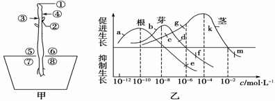 (2)将该植物较长时间置于右侧光照下,乙图 点浓度可表示③侧