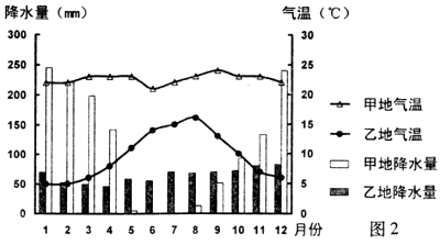 9.甲、乙两地可能种植的主要经济作物分别是