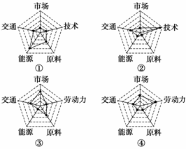 读“工业区位因素影响力模式图”(图中各点与中心距离的长短表示各区位因素影响程度的大小),回答10-11题。