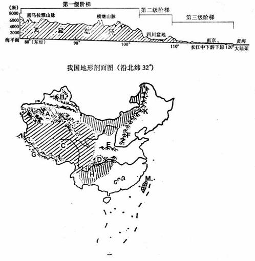 62.读“我国地形剖面图”和“中国地形分布空白图”回答(20分)