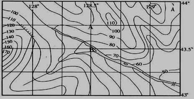 29.图中AB两点的图上距离若为2.75厘米,则该图的比例尺约为: ( )