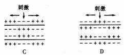 20.在一条离体神经纤维的中段施加电刺激,使其兴奋。下图表示刺激时的膜内外电位变化和所产生的神经冲动的方向(横向箭头表示神经冲动的传导方向),其中正确的是