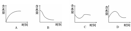 34. 将紫色洋葱表皮细胞放入一定浓度硝酸钾溶液中,在显微镜下观察发现开始液泡颜色逐渐变深,后来又逐渐变浅,能够反映细胞液含水量随时间变化的图是