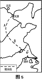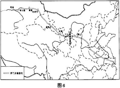 图5是“南水北调东线工程示意图”、图6是“西气东输管道分布示意图”,读图完成5-7题。