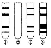 在做“绿叶中色素的提取和分离”实验时,甲、乙、丙、丁四位同学对相关试剂的使用情况如下表所示(“+”表示使用,“一”表示未使用),其余操作均正常,他们所得的实验结果依次应为 ( )