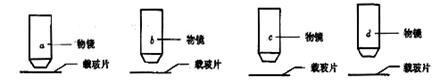 20.用显微镜的一个目镜分别与4个不同倍数的物镜组合来观察血细胞涂片。当成像清晰时,每一物镜与载玻片的距离如图所示。如果载玻片位置不变,用哪一种物镜在一个视野中看到的细胞最多